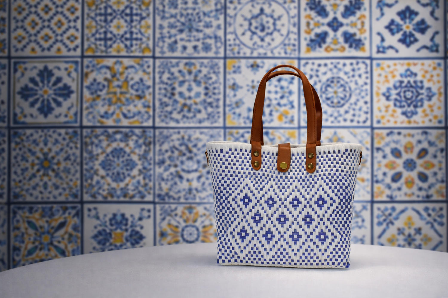 Diseño contemporáneo tejido a mano. Cada pieza es el resultado de artesanía refinada y técnicas ancestrales. Detrás de cada bolsa hay una historia de reinserción social y dignidad.
